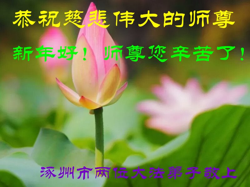 恭祝慈悲伟大的师尊新年快乐!师尊您辛苦了! 弟子叩谢恩师的慈悲苦度!坚修大法,跟师尊圆满回家! 涿州市俩位大法弟子敬上 河北省保定涞水大法弟子恭祝师父新年好!