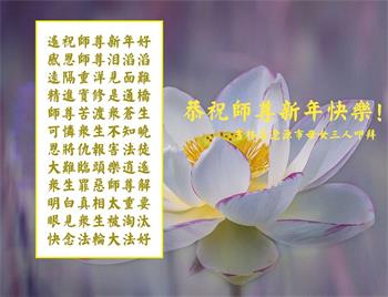 感谢师父慈悲救度。我们三位老年同修,互相鼓励,互相促進,坚定走在正法路上,在师尊保护下做好三件事。一定坚修到底,跟师父回家。 吉林省辽源大法弟子恭祝师尊元旦快乐!