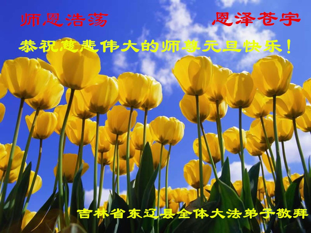 辽源大法弟子恭祝师尊元旦快乐! 吉林省辽源市东辽县全体大法弟子敬拜师尊元旦快乐!