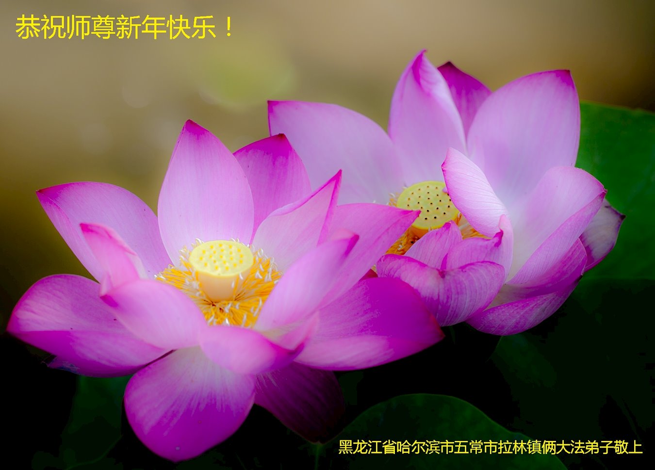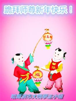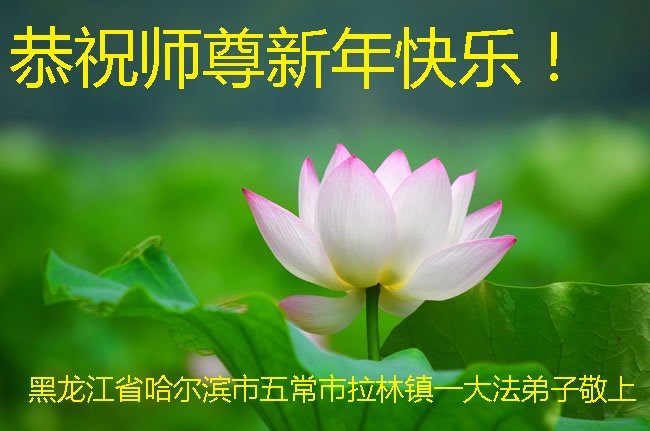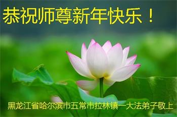 师父您好!师父辛苦了! 感恩之心无以言表,谢谢恩师!弟子叩拜师尊,敬祝师尊新年快乐! 哈尔滨母女两名大法弟子敬贺 黑龙江省哈尔滨市五常市拉林镇一大法弟子及家人恭祝师尊新年快乐!