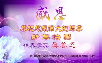 【明慧网二零一八年十二月二十九日】 黑龙江哈尔滨市双城区联兴乡大法弟子恭祝师尊新年快乐!