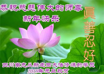 【明慧网二零一八年十二月二十九日】 四川绵阳大法弟子恭祝师尊新年快乐!