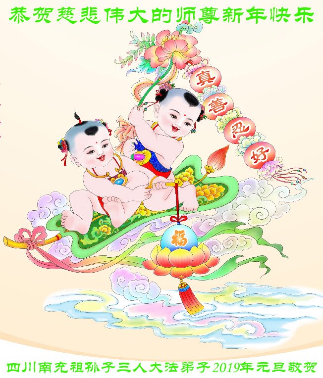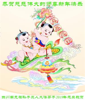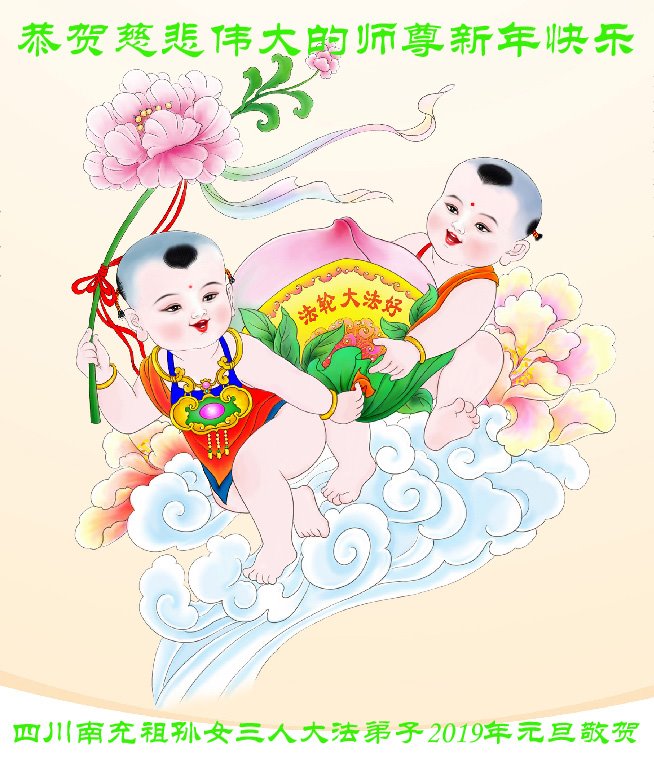 四川南充顺庆两家三代大法弟子恭祝慈悲伟大的师尊新年快乐!