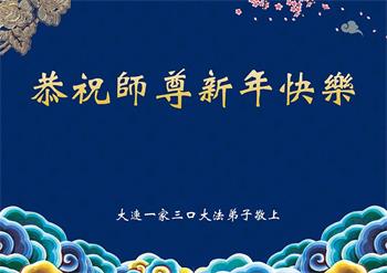 辽宁省大连一家三口大法弟子恭祝师尊新年快乐!