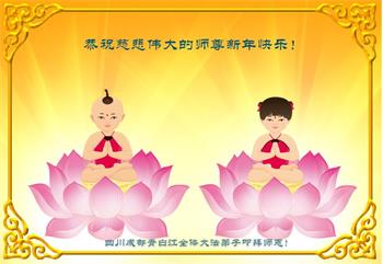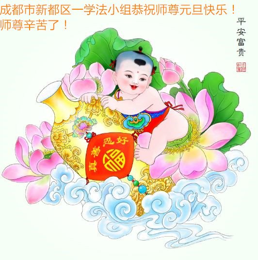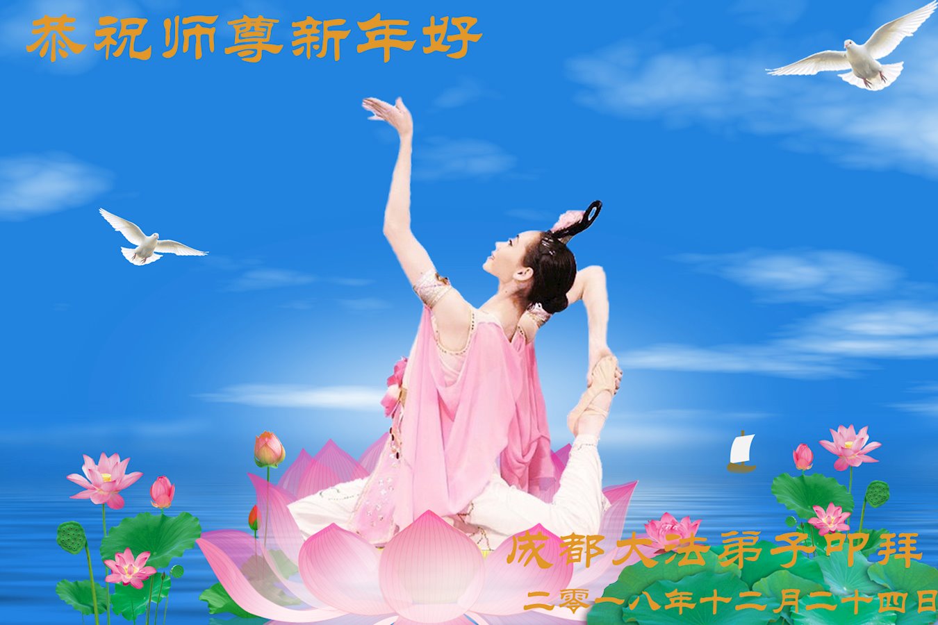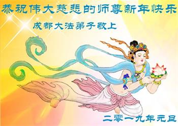 【明慧网二零一八年十二月二十九日】 四川省成都市郫都区大法弟子恭祝慈悲伟大的师尊新年快乐!