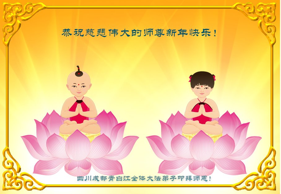 四川省成都大法弟子恭祝伟大慈悲的师尊新年快乐!