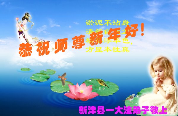 恭祝师尊新年快乐!师尊您辛苦了﹗弟子谢谢师尊的慈悲救度,弟子还有很多不好的观念、人心,从心里觉的对不起师尊的慈悲苦度,弟子要珍惜这万古不遇的机缘、珍惜师尊为弟子所做的一切,跟师尊回家。再次感恩师尊! 四川省成都彭州市大法弟子夫妻及全家恭祝师父新年好!