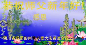 四川省成都彭州市大法弟子夫妻及全家恭祝师父新年好!
