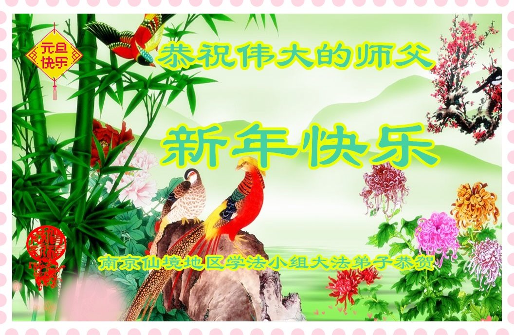 师恩浩荡,弟子无以为报,只有精進,精進,再精進,修好自己,多多救人,才能不负师恩。 江苏省南京俩人小组大法弟子恭祝慈悲伟大的师尊新年快乐!