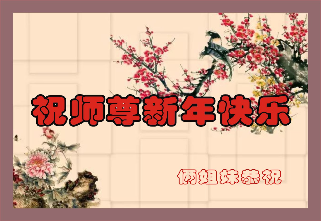 【明慧网二零一八年十二月二十九日】 江苏省苏州市昆山市俩姐妹恭祝慈悲伟大的师尊新年快乐!