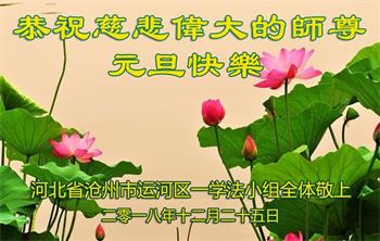 河北省沧州市运河区一学法小组全体大法弟子恭祝慈悲伟大的师尊元旦快乐!