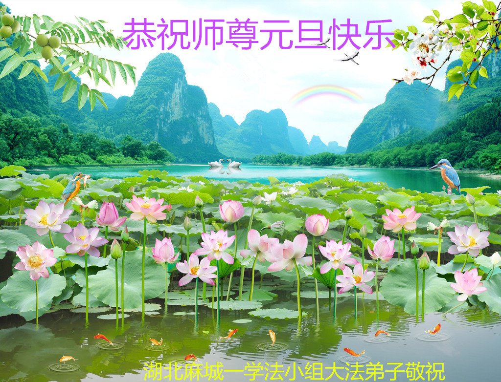 湖北省黄冈市麻城市学法小组大法弟子恭祝元旦快乐! 湖北省黄冈市麻城市全体大法弟子恭祝师尊元旦快乐!