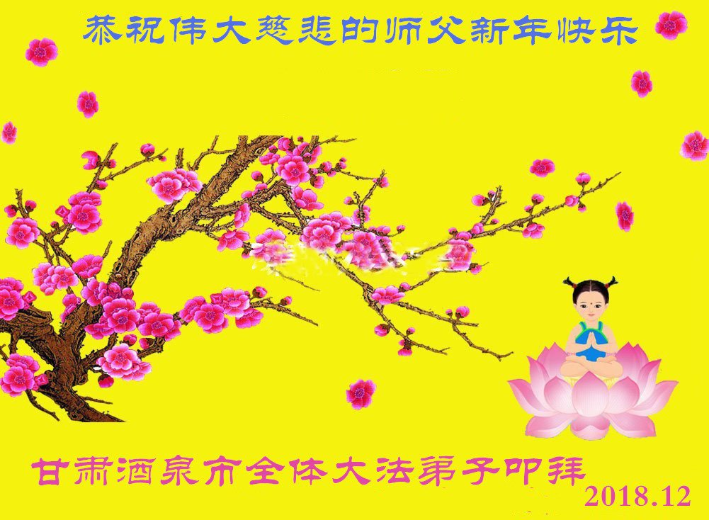 【明慧网二零一八年十二月二十九日】 甘肃金昌市一大法弟子全家恭祝师父新年好!