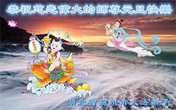 师尊元旦快乐!我们唯有精進再精進!谢谢师父! 湖北省荆州市大法弟子恭祝师父元旦快乐!