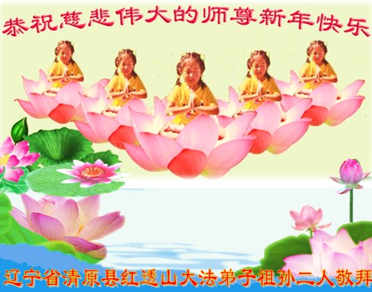 辽宁丹东市汤池一学法小组全体弟子恭祝师尊新年快乐!感谢师尊这些年来慈悲呵护,师尊您辛苦了! 弟子们叩拜! 辽宁省抚顺市清原县红透山大法弟子祖孙二人恭祝师尊新年快乐!