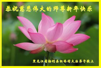 黑龙江省勃利县东岗村大法弟子问候师尊: 恭祝慈悲伟大的师尊新年快乐! 黑龙江省勃利县东岗村大法弟子敬上 黑龙江伊春市大法弟子恭祝师尊新年快乐!