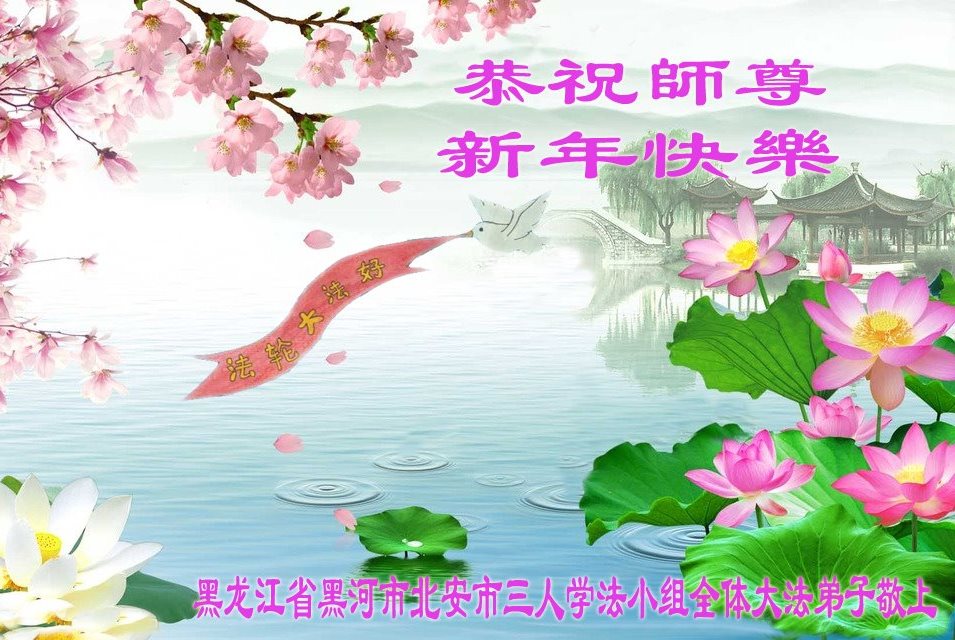 【明慧网二零一八年十二月二十九日】 黑龙江省黑河市北安市三人学法小组全体大法弟子恭祝师尊新年快乐!