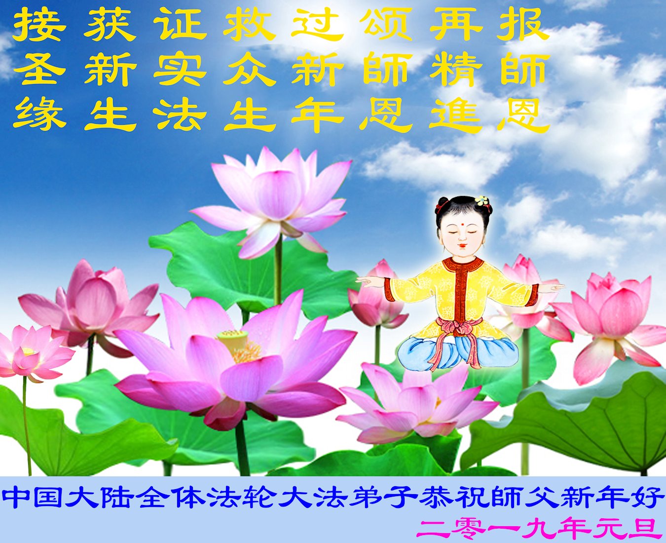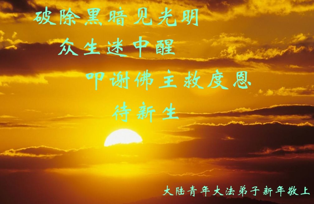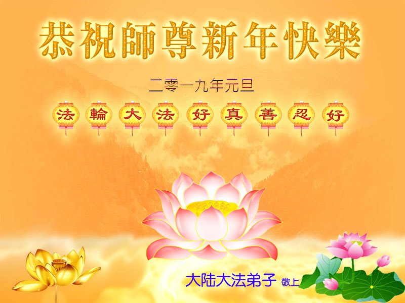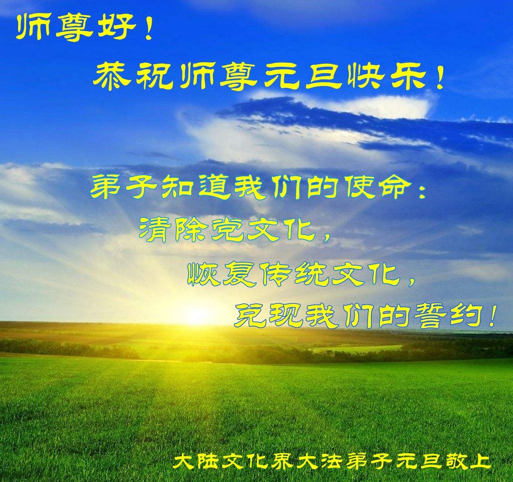 中国大陆全体法轮大法弟子恭祝师父新年好!感谢师父的救度之恩。 大陆大法弟子恭祝慈悲伟大的师父新年好!