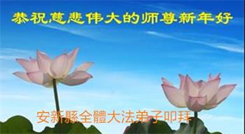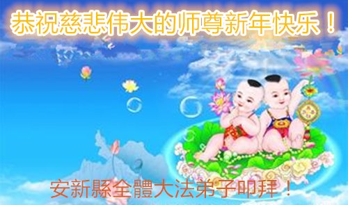 恭祝慈悲伟大的师尊新年快乐! 安新县全体大法弟子叩拜! 安新县全体大法弟子恭祝慈悲伟大的师尊新年快乐!