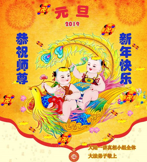 恭祝慈悲伟大的师父新年快乐! 丰润一中年大法弟子敬上 二零一八年十二月二十四日 大陆一大法弟子恭祝师尊元旦快乐!
