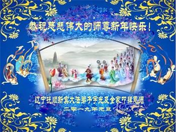 辽宁抚顺市一大法弟子及全家人恭祝慈悲伟大的师父新年快乐!