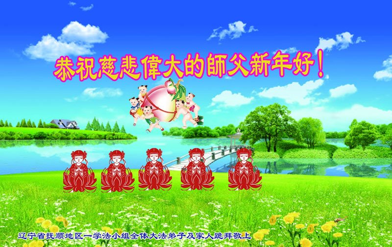 辽宁省抚顺地区一学法小组全体大法弟子及家人恭祝慈悲伟大的师父新年好!