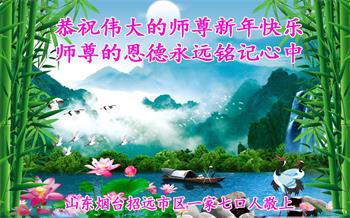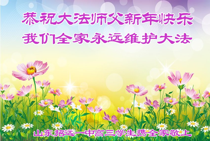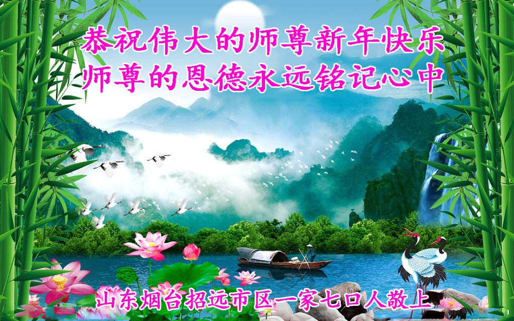 谢谢师父慈悲苦度,给了我新生!我们全家叩谢师父救命之恩。我们会永远记住:“法轮大法好,真善忍好”,维护大法,我也要挤时间学法修心,做您的小弟子。祝大法师父新年快乐! 山东烟台招远市一家七口恭祝伟大的师尊新年快乐!