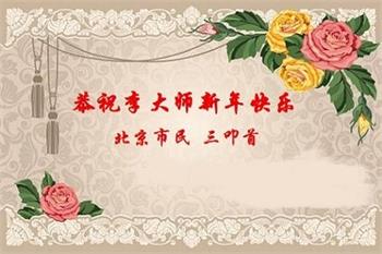 | 【明慧网二零一八年十二月二十九日】2019年新年到!中国大陆广大民众与大法弟子的家人,恭祝李洪志师父元旦快乐! 他们用切身经历证实:支持大法、诚念“法轮大法好”就会得到大法师父赐予的福报。危难中遇难呈祥,转危为安,绝症得痊愈,家庭和睦。北京市民金先生感叹:“李大师啊!我们没有见过您,但是知道您在看着天下苍生。”新年到来之际,祝李大师新年快乐!盼望大法师父回到中国来! 四川省达州一农民感恩大法救命