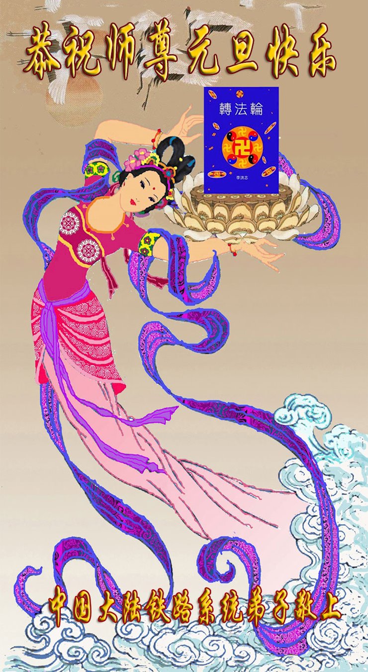 赤橙黄绿青蓝紫 天女散花飘宇间 天门洞开光明显 法正人间创新天 中国大陆农牧系统大法弟子恭祝慈悲伟大的师父新年快乐!