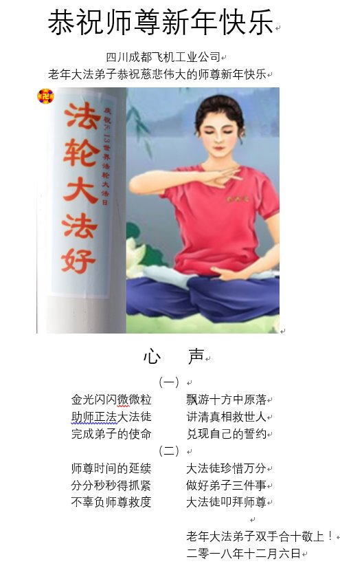 四川成都飞机工业公司老年大法弟子恭祝慈悲伟大的师尊新年快乐!