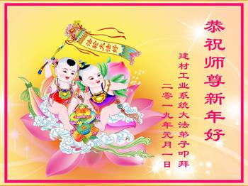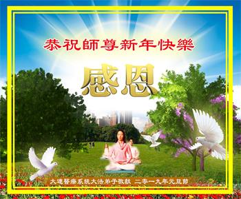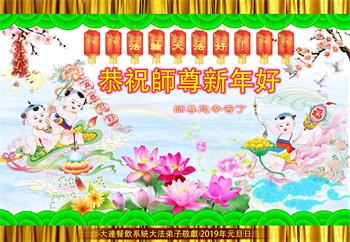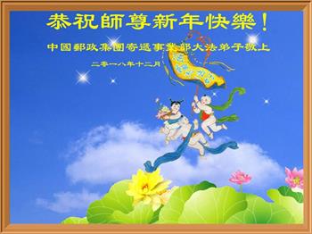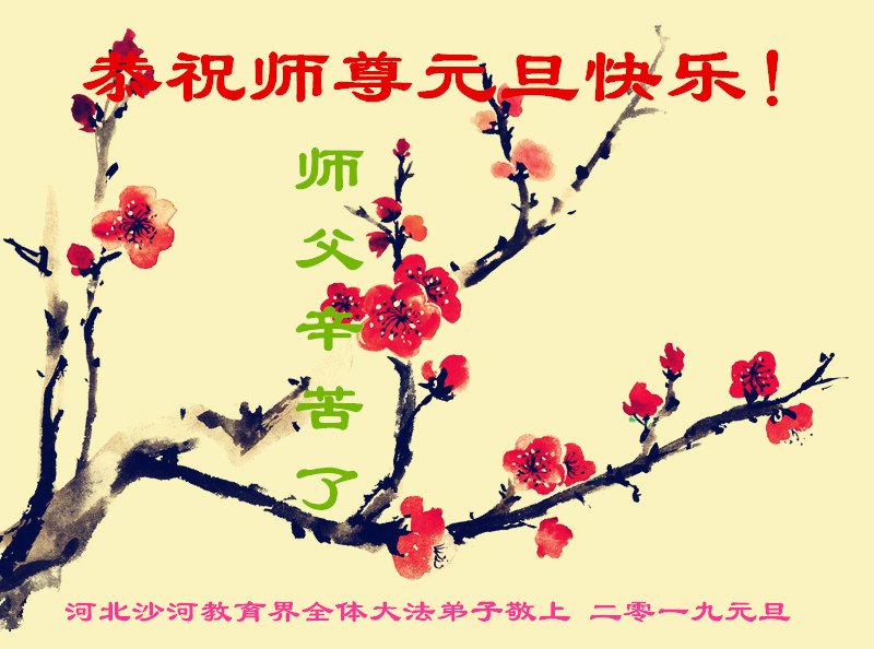 | 【明慧网二零一八年十二月二十九日】二零一九年新年来临之际,工作在四十个行业的中国大陆大法弟子向李洪志师父发来贺词,表达他们对慈悲伟大的师父的新年祝贺和感恩。 河北沙河教育界大法弟子表示:“每次给师尊制作贺卡,内心都充满了感动!自身的健康、家人的健康以及修大法之后得到的福份,不是一个“谢”字、也不是罄尽人类所有的语言能够表达的出来的!” 中国农业发展银行大法弟子赋词一首,恭祝至高无上的师尊新年快乐! “宋词 梅花笑 风雪飘 红墙倒 四面楚歌驱邪灵 春到人间阴霾消 漫天梅花笑 剥极必复换新朝 佛恩浩荡架天桥” 截至十二月二十五日,明慧网收到来自教育界、电力系统、金融系统、医疗系统、餐饮系统、航天航空系统、民用航空系统、银行系统、油田系统、石化系统、船舶系统、林业系统、文艺界、铁路系统、审计系统、音乐界、交通系统、冶金系统、财务系统、建材工业系统、邮政系统、天然气行业、城建系统、环卫系统、科技系统、农垦系统、房地产行业、文卫系统、外贸系统、水利系统、纺织系统、发行系统、电讯系统、医务界、国企、军工系统、黄金系统、农牧系统、保险行业,等四十多个行业的大法弟子发来的贺信,恭祝师父新年快乐! 南京市航天航空系统全体大法弟子恭祝师父元旦快乐!