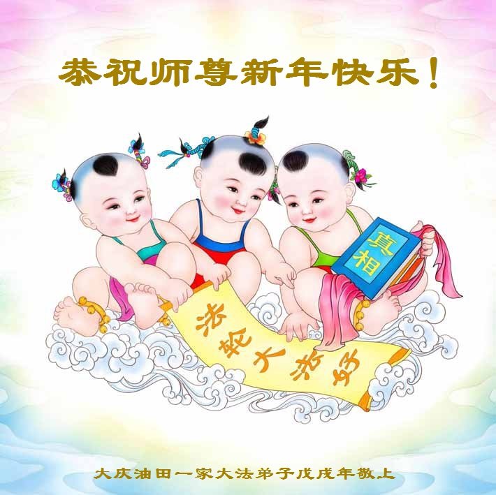 黑龙江大庆油田一家大法弟子恭祝慈悲伟大的师尊新年好!新年快乐!