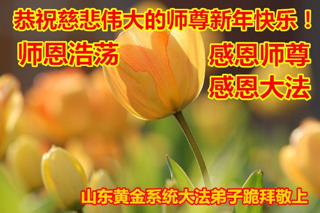 法轮大法传世间 佛光普照暖心间 春暖花开又一年 得法修行福满天 山东黄金系统大法弟子恭祝慈悲伟大的师尊新年快乐!