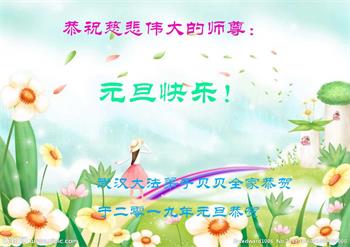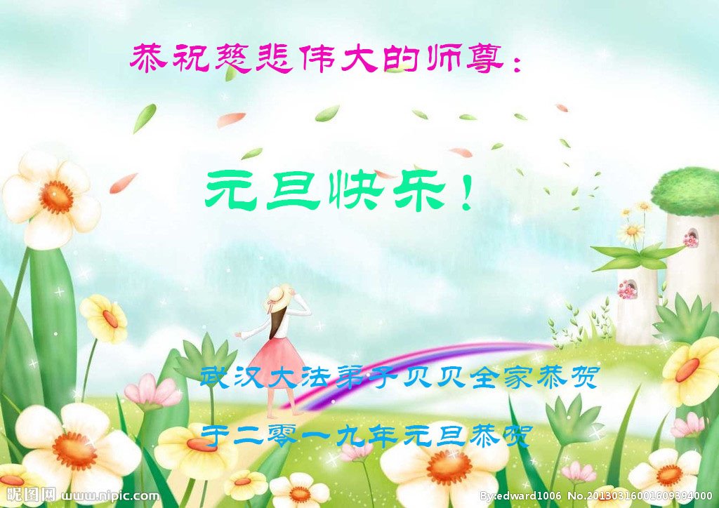师父您好!师父您辛苦了!感恩师父恩赐的成就未来的宇宙大法。 湖北省孝感市大悟县大法弟子恭祝师父元旦快乐!