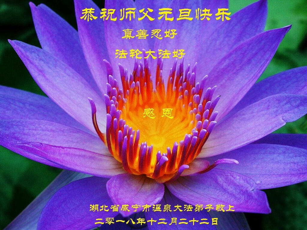 湖北省咸宁市温泉区一大法弟子跪祝恩师元旦快乐! 湖北省武汉市阳逻街一中老年学法小组全体大法弟子恭祝慈悲伟大的师尊新年快乐!