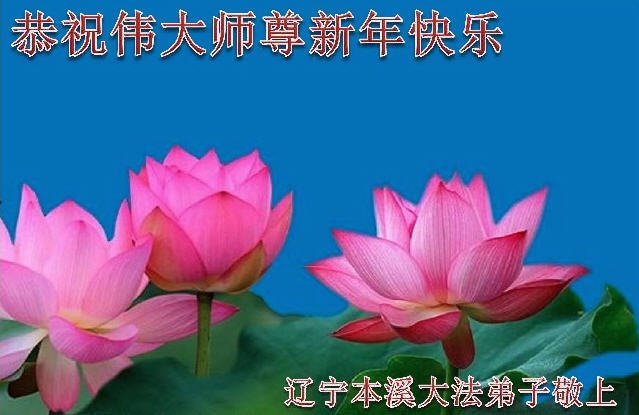 辽宁本溪一老年大法弟子问师尊好!伟大的师尊新年好!谢谢师尊慈悲救度! 辽宁本溪大法弟子恭祝伟大的师尊新年快乐!