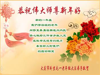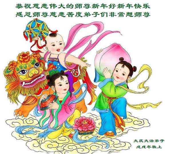 二十年来,师尊为弟子们操尽了心,无法用语言来感恩师尊的慈悲救度。今后弟子们唯有学好法,向内找修好自己,多救人,做好师父要求的三件事,圆满跟师尊回家。 黑龙江省大庆市卧里屯一老年组大法弟子恭祝伟大师尊新年好!