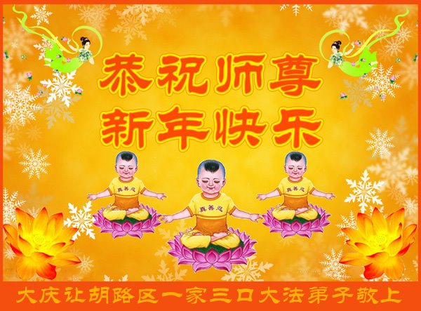 黑龙江大庆市让胡路区一家三口大法弟子恭祝慈悲伟大的师尊新年快乐!