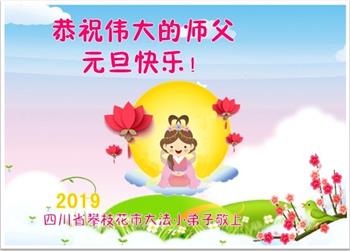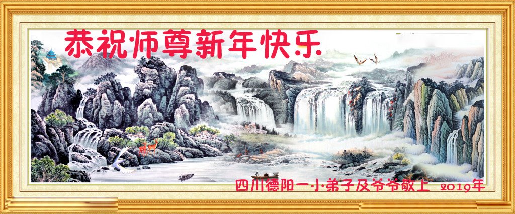 四川德阳一大法小弟子及爷爷恭祝师尊新年快乐!