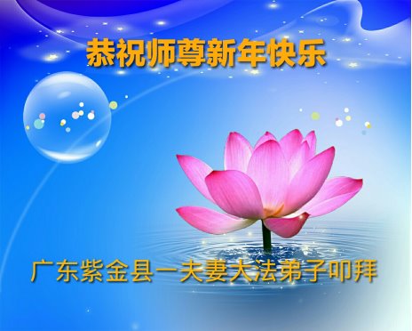 广东省河源市紫金县一夫妻大法弟子恭祝慈悲伟大的师尊新年快乐!