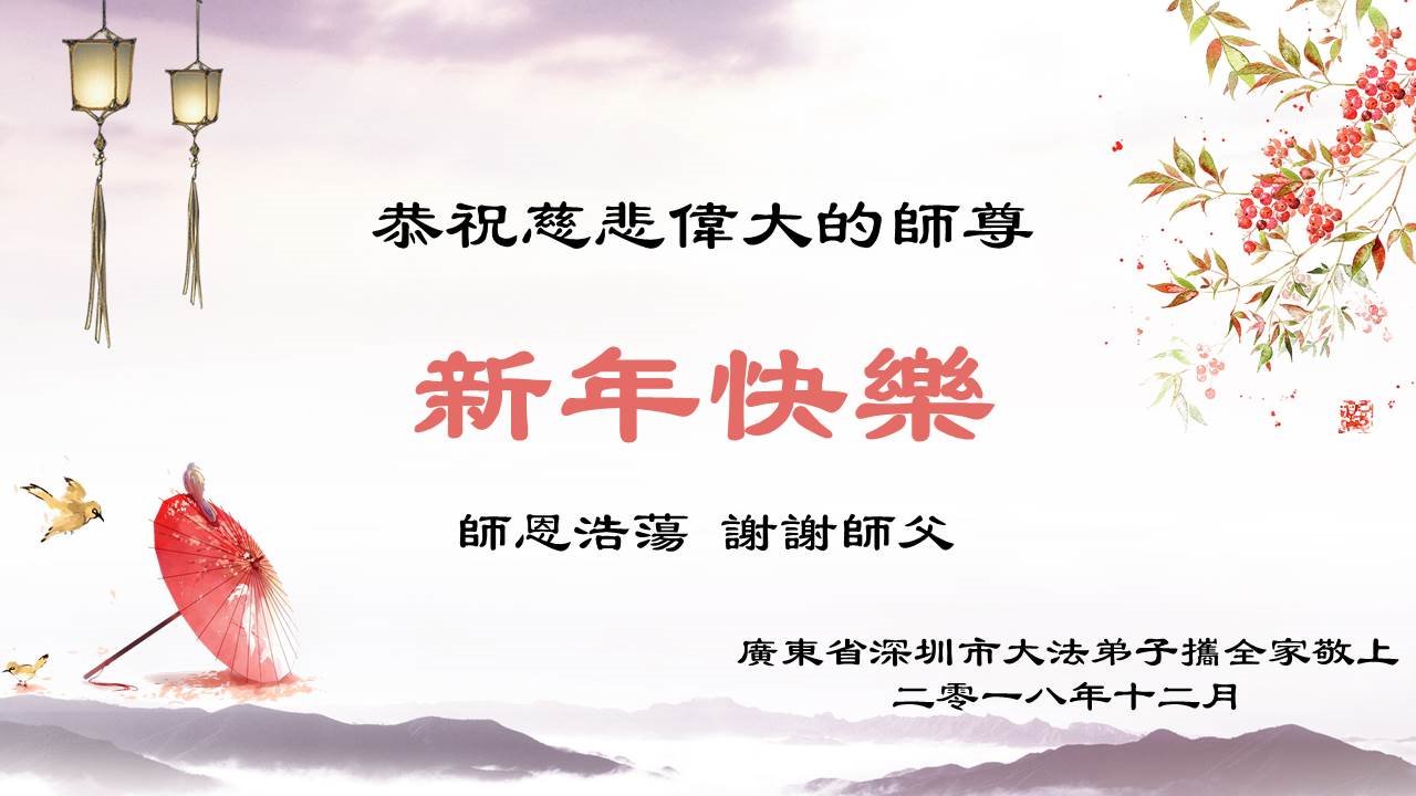 【明慧网二零一八年十二月三十一日】 广东省深圳市大法弟子携全家恭祝慈悲伟大的师尊新年快乐!