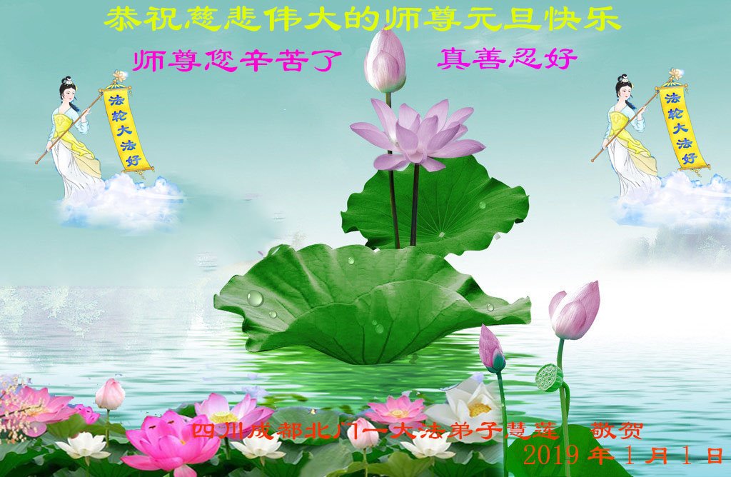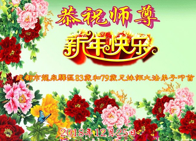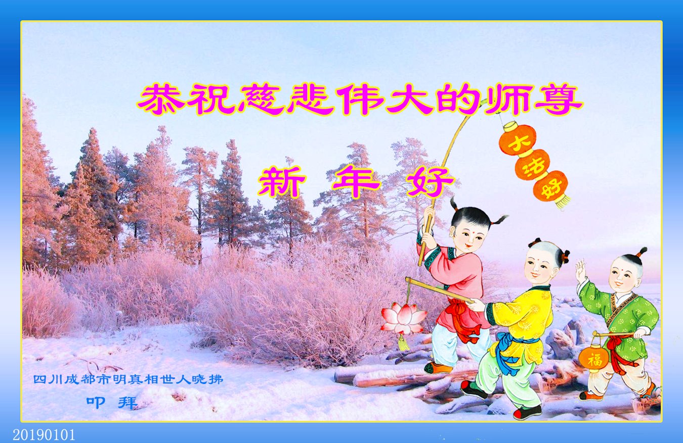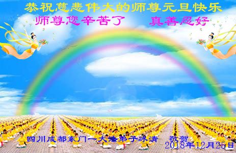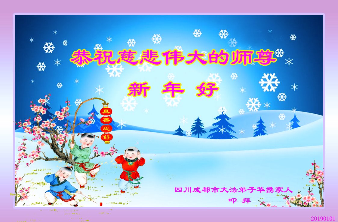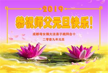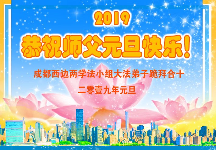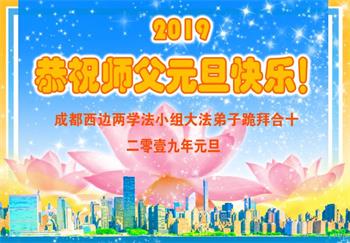 四川省成都西边两学法小组大法弟子恭祝师父二零一九年元旦快乐!
