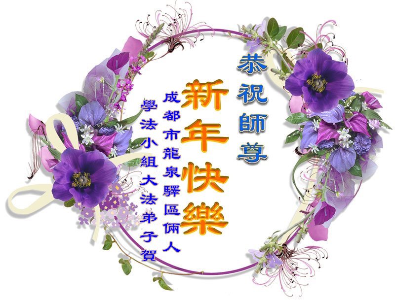 四川省成都市龙泉驿区俩人学法小组大法弟子恭祝师尊新年快乐!
