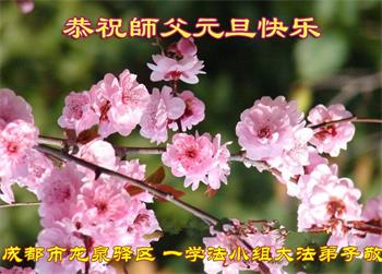 四川省成都龙泉驿区一学法小组大法弟子恭祝师尊元旦快乐!