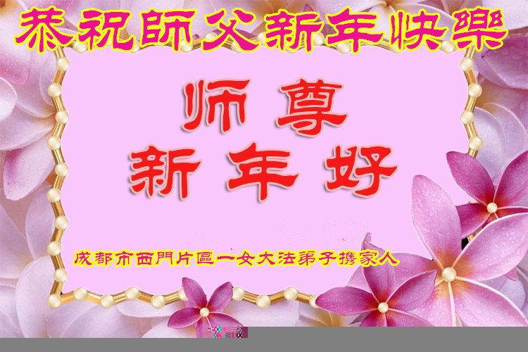 四川省成都西门片区一女大法弟子携家人恭祝师父新年快乐!