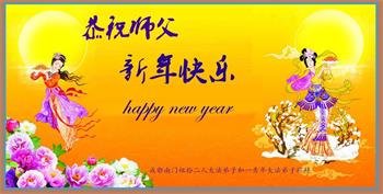 四川省成都西门片区一学法小组大法弟子恭祝师尊新年快乐!