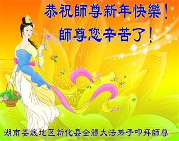 湖南省娄底地区新化县全体大法弟子恭祝师父新年快乐!师父您辛苦了!