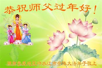 湖南省娄底地区冷水江市全体大法弟子恭祝师父新年快乐!