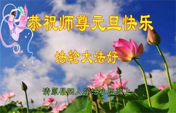 不忘师尊苦度,牢记史前大愿,坚持学法炼功,救度有缘众生。 辽宁省抚顺市清原县四人学法小组大法弟子恭祝师尊元旦快乐!