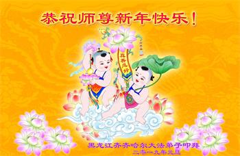 黑龙江省齐齐哈尔一大法弟子及二人学法小组大法弟子恭祝师尊新年快乐!